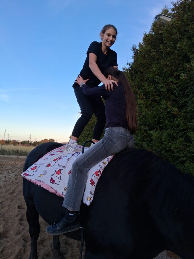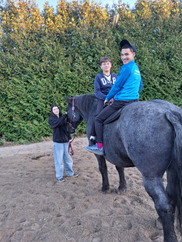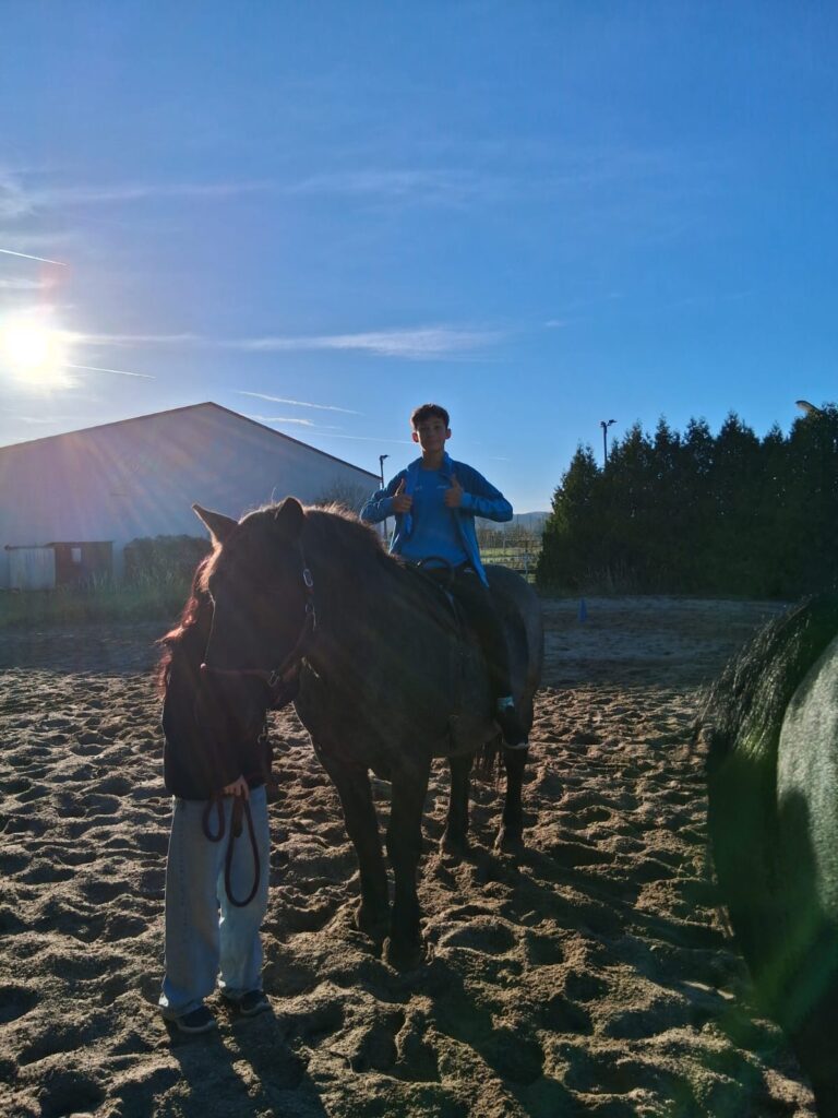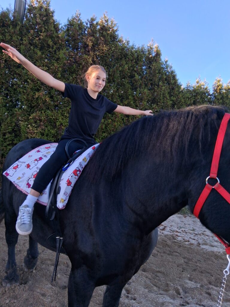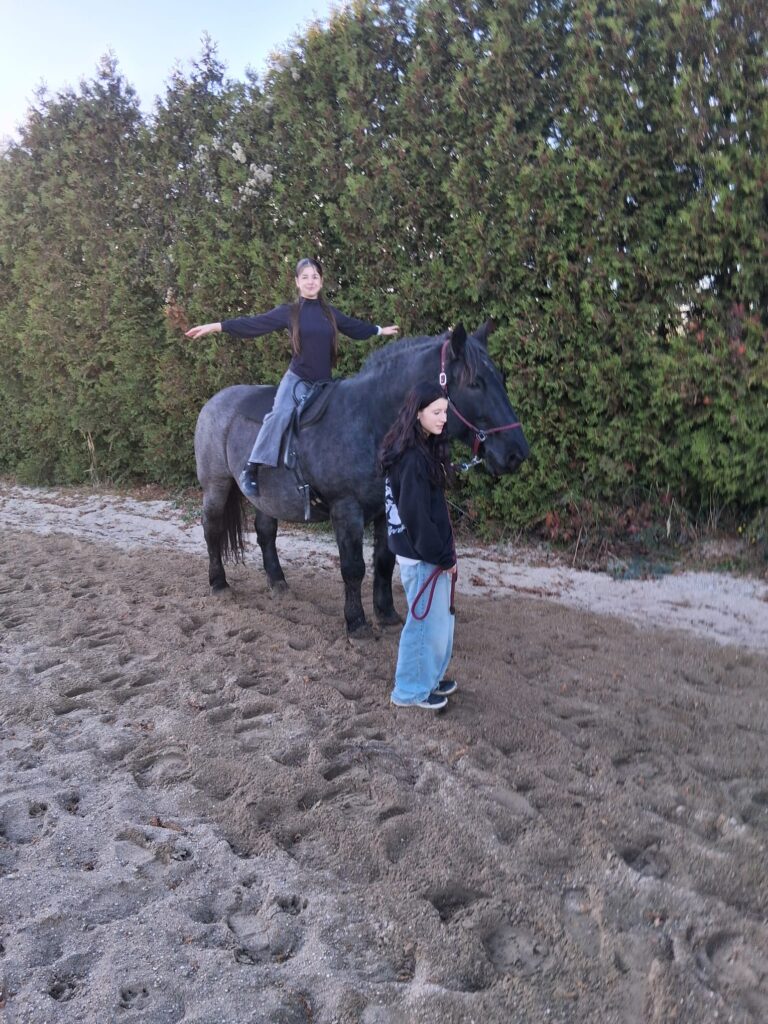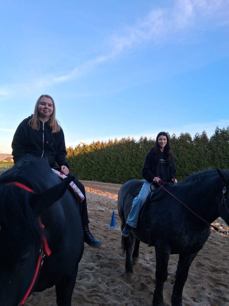 Die Elternvereinsobfrau und Klassenelternvertreterin der 4.b., Frau Springer Elisabeth, lud die Schüler*innen ihrer Klasse zu einem Nachmittag mit ihren Norikern auf den Reitplatz. Annemarie und Josefine fungierten tatkräftig als Helferinnen mit ihrer Erfahrung im Umgang mit Pferden. Unsere Burschen standen dieser Aufgabe vorab sehr skeptisch gegenüber, konnten aber von Frau Springer großartig motiviert werden und ließen sich schließlich auf die neue Herausforderung ein. Noriker sind in ihrer Größe (und Masse) nicht zu unterschätzen, flößen daher zunächst doch erheblichen Respekt ein. Dennoch saßen alle Kinder alleine oder auch zu zweit auf jedem der drei Tiere und selbst kleine Kunststücke waren am Ende kein Thema mehr.