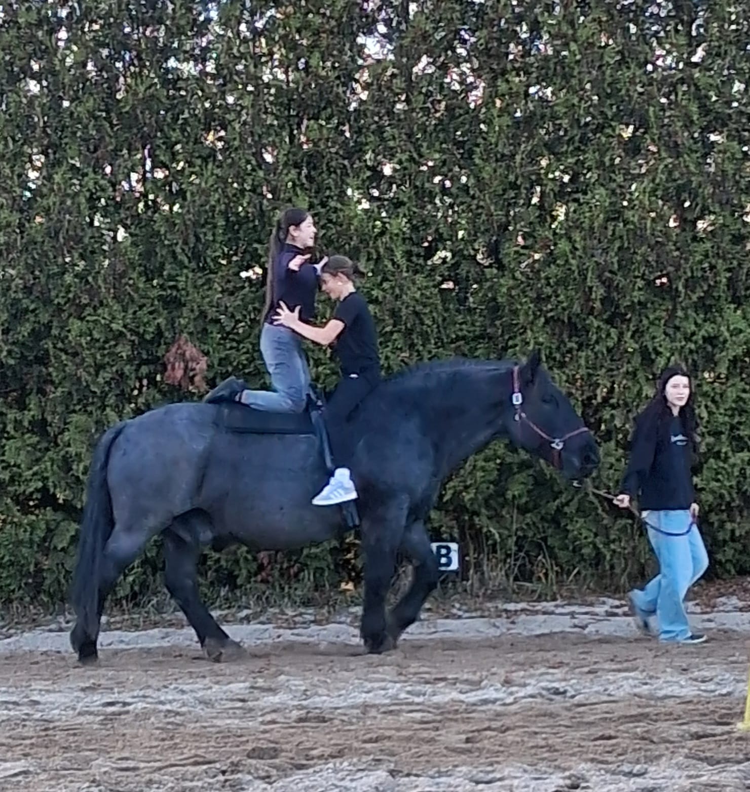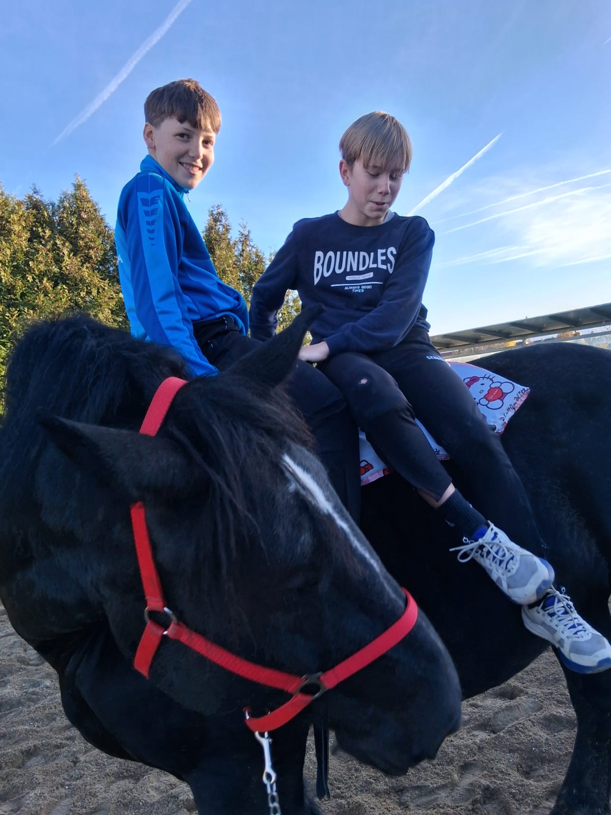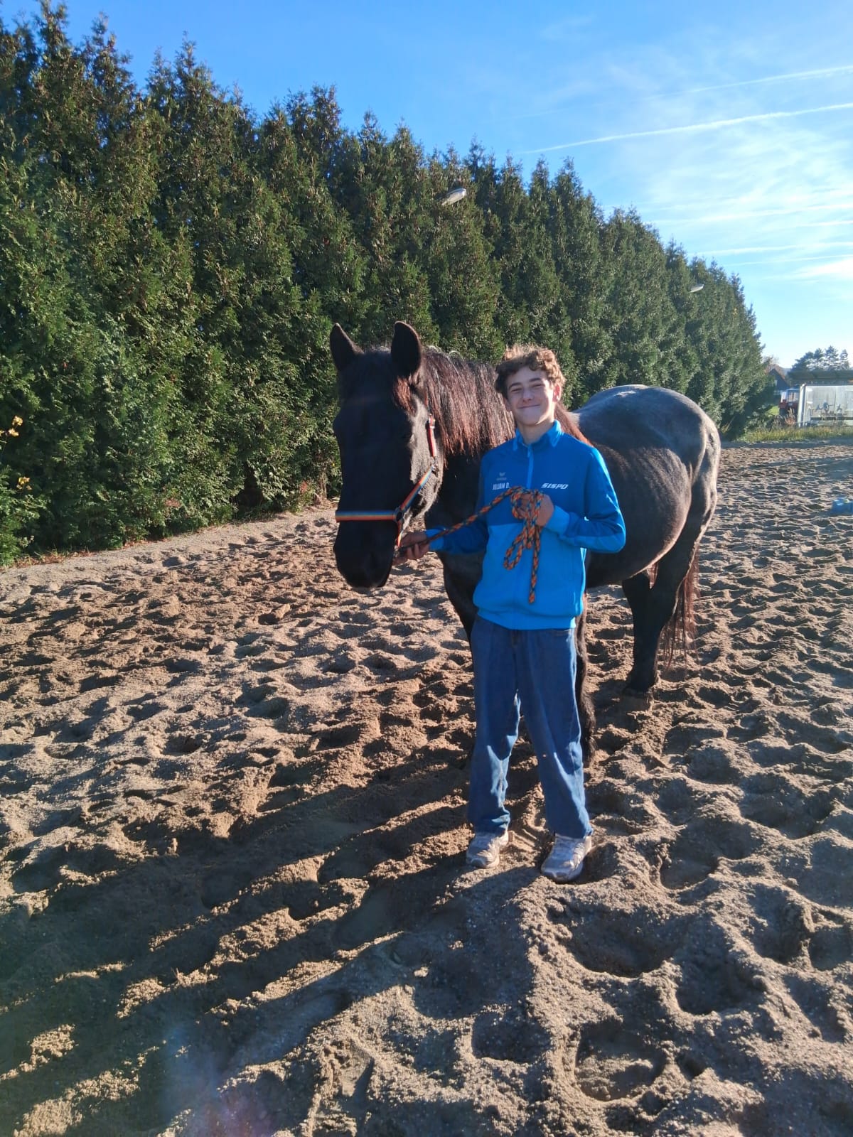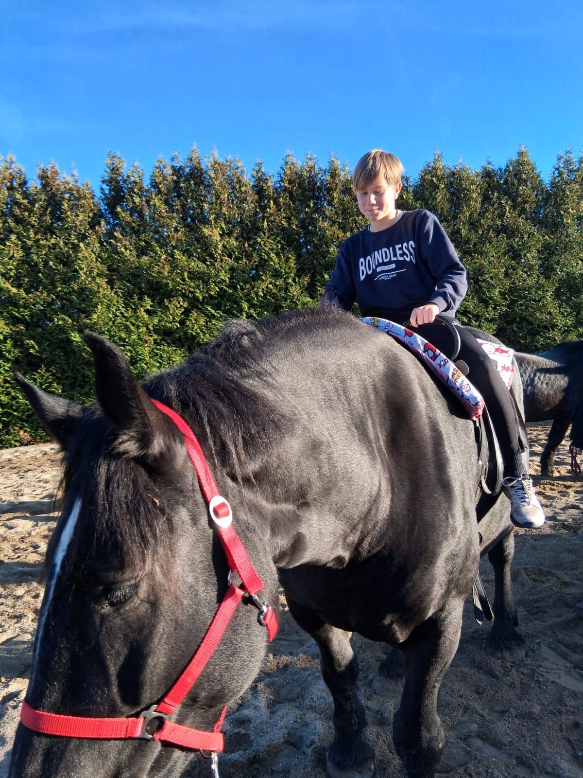 Die Elternvereinsobfrau und Klassenelternvertreterin der 4.b., Frau Springer Elisabeth, lud die Schüler*innen ihrer Klasse zu einem Nachmittag mit ihren Norikern auf den Reitplatz. Annemarie und Josefine fungierten tatkräftig als Helferinnen mit ihrer Erfahrung im Umgang mit Pferden. Unsere Burschen standen dieser Aufgabe vorab sehr skeptisch gegenüber, konnten aber von Frau Springer großartig motiviert werden und ließen sich schließlich auf die neue Herausforderung ein. Noriker sind in ihrer Größe (und Masse) nicht zu unterschätzen, flößen daher zunächst doch erheblichen Respekt ein. Dennoch saßen alle Kinder alleine oder auch zu zweit auf jedem der drei Tiere und selbst kleine Kunststücke waren am Ende kein Thema mehr.