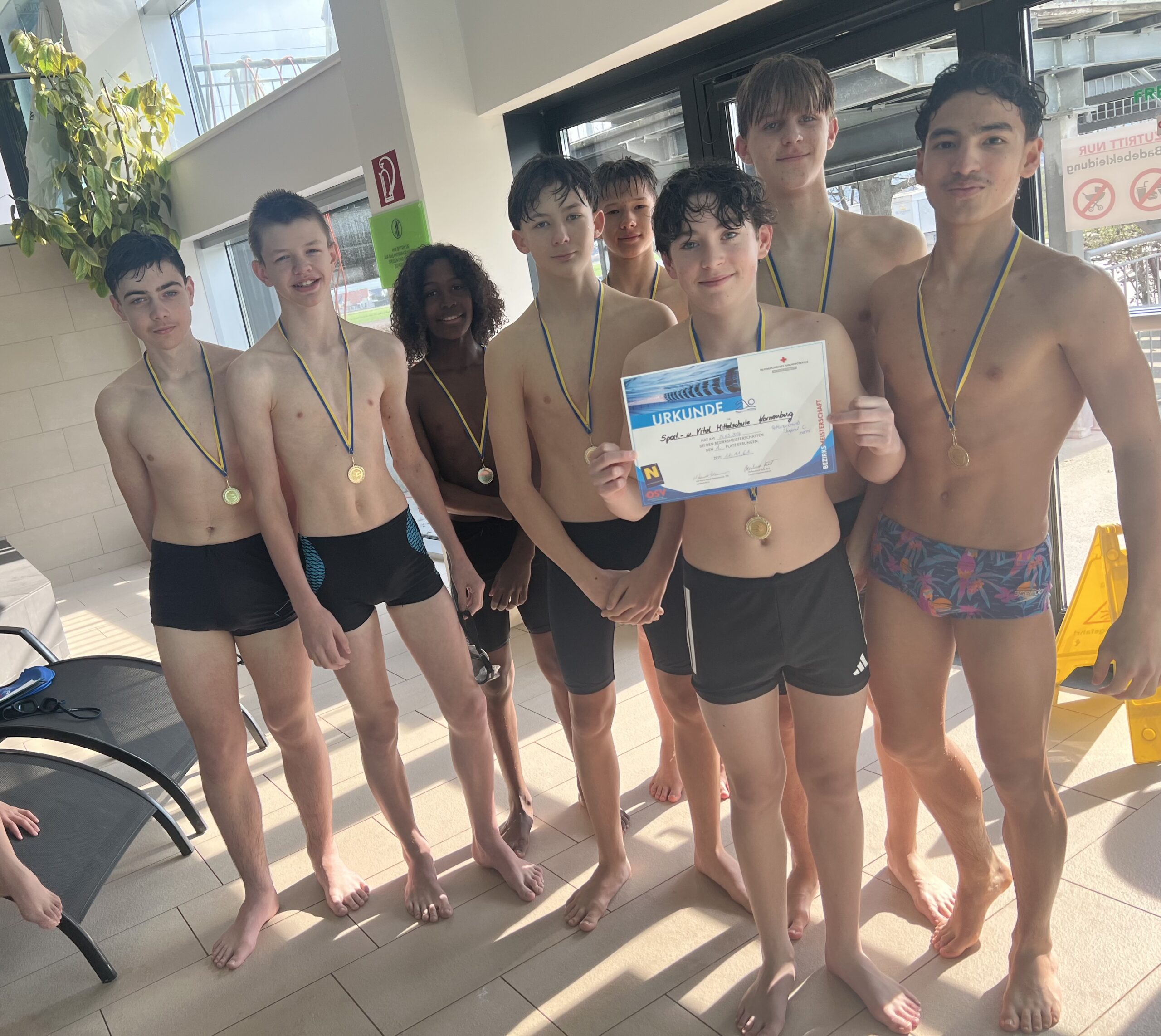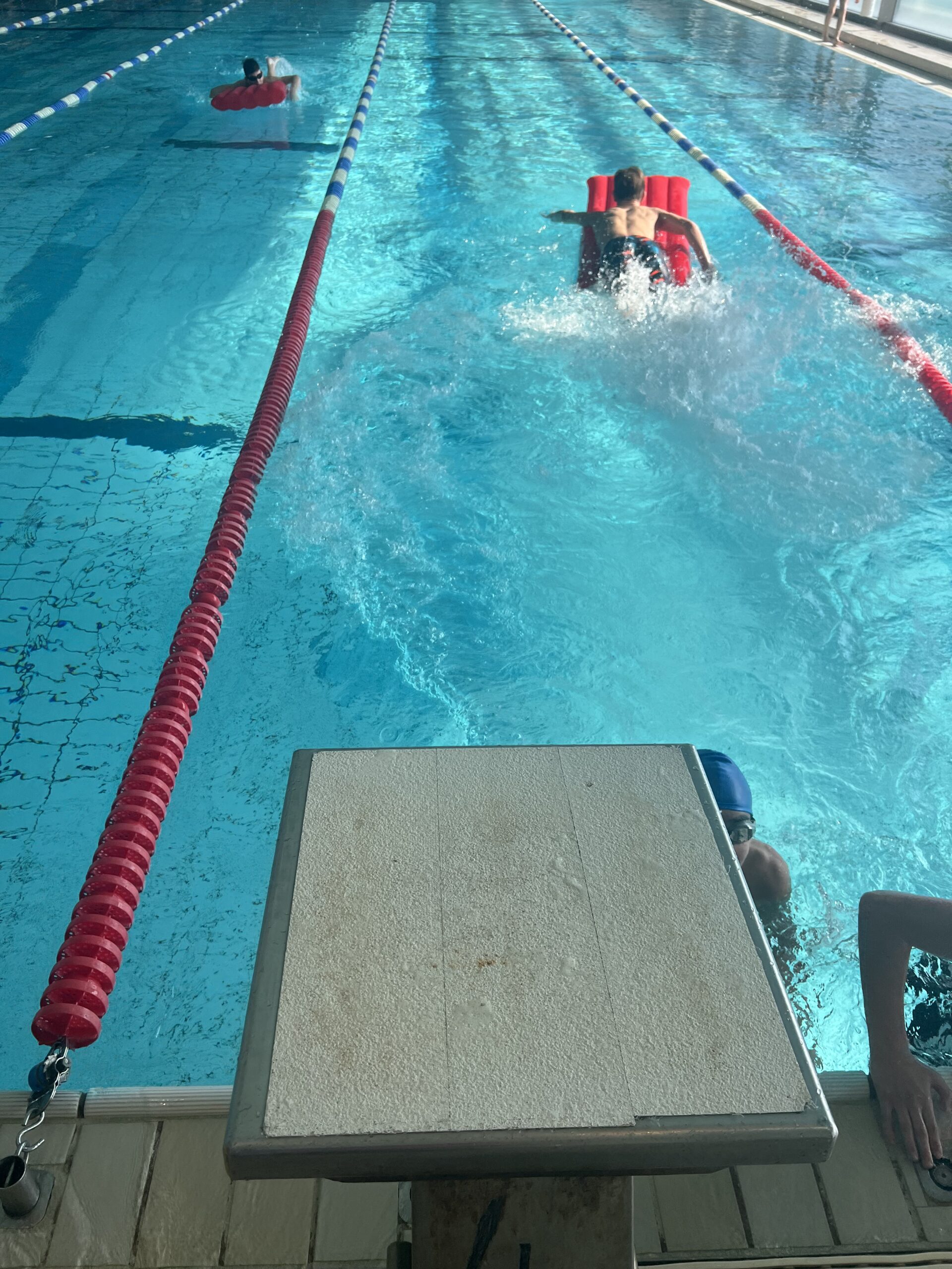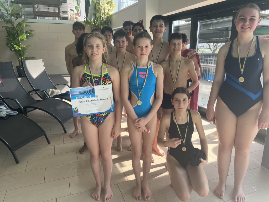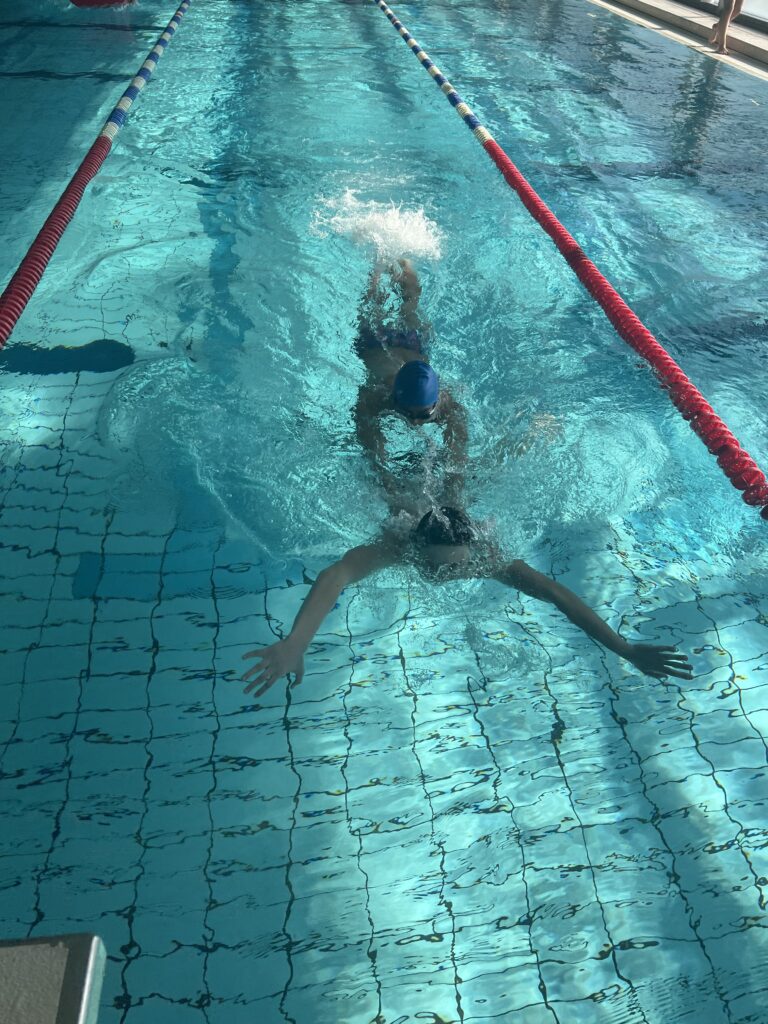 Auch die 1. und 2. Klassen zeigten tolle Leistungen: Beim Bewerb „8 × 50 Meter Freistil“ erreichten die Mädchen den ersten Platz, während sich die Burschen den zweiten Platz sichern konnten.