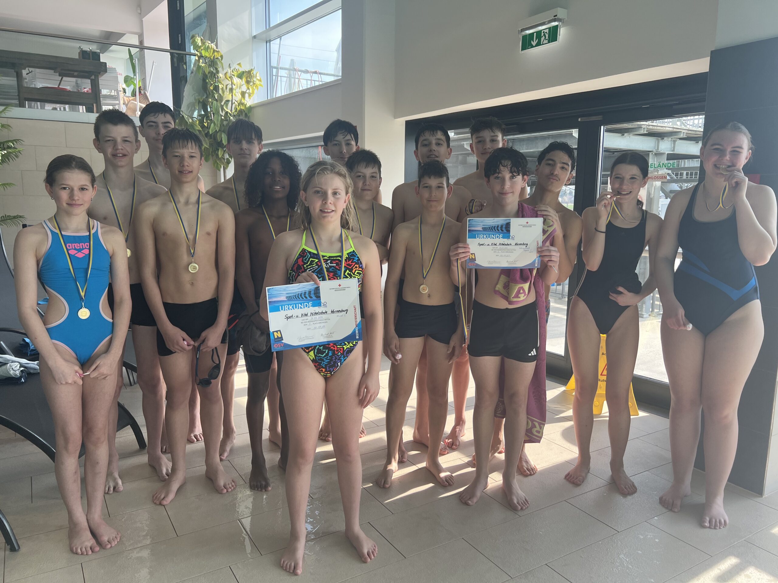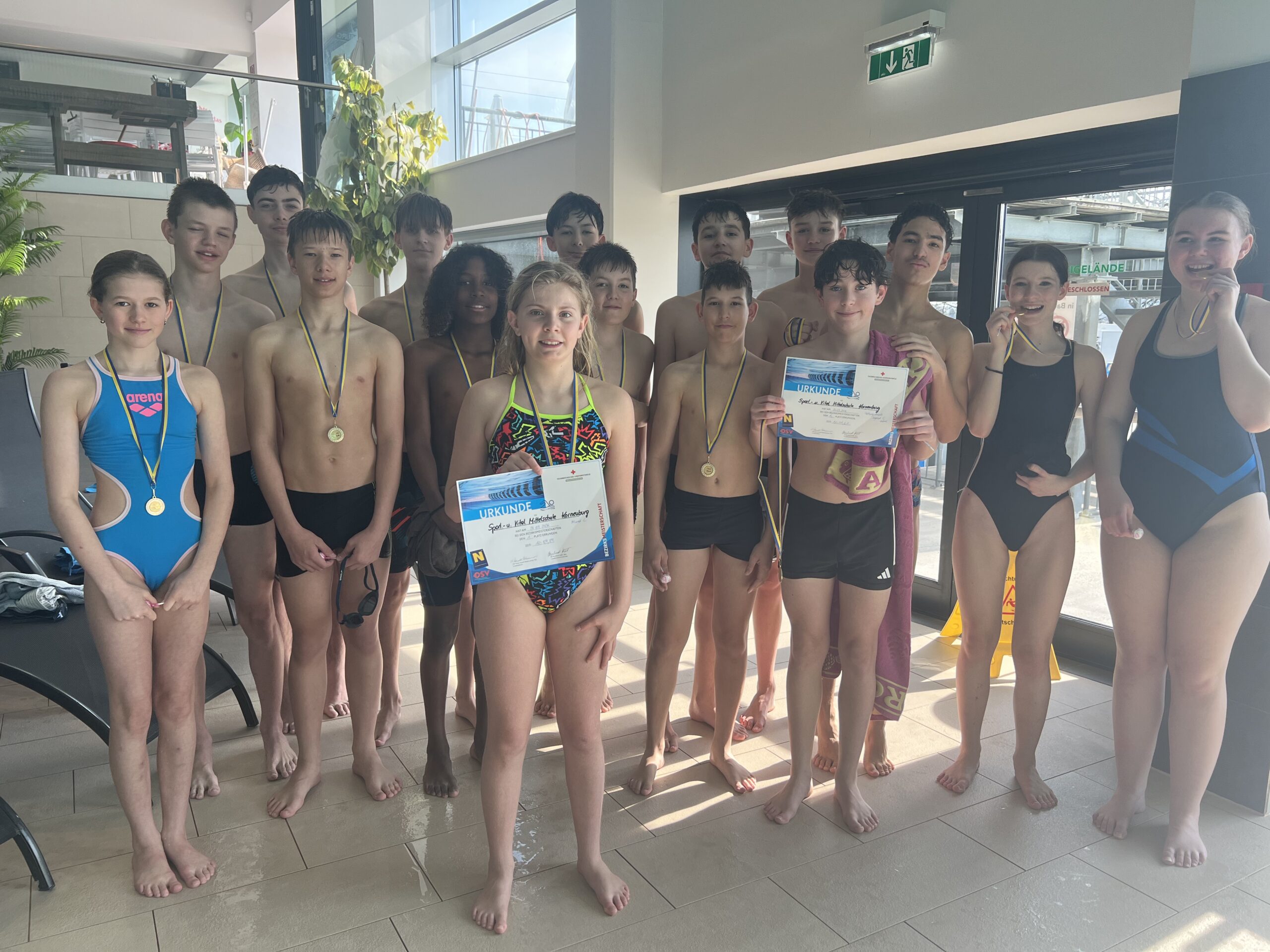 Die Bezirksmeisterschaften im Florian-Berndl-Bad verliefen für unsere Teams äußerst erfolgreich. Die Mixed-Staffel sowie der Rettungsbewerb wurden von den SchülerInnen der 3. und 4. Klassen bestritten – in beiden Bewerben konnten wir jeweils den ersten Platz erreichen.